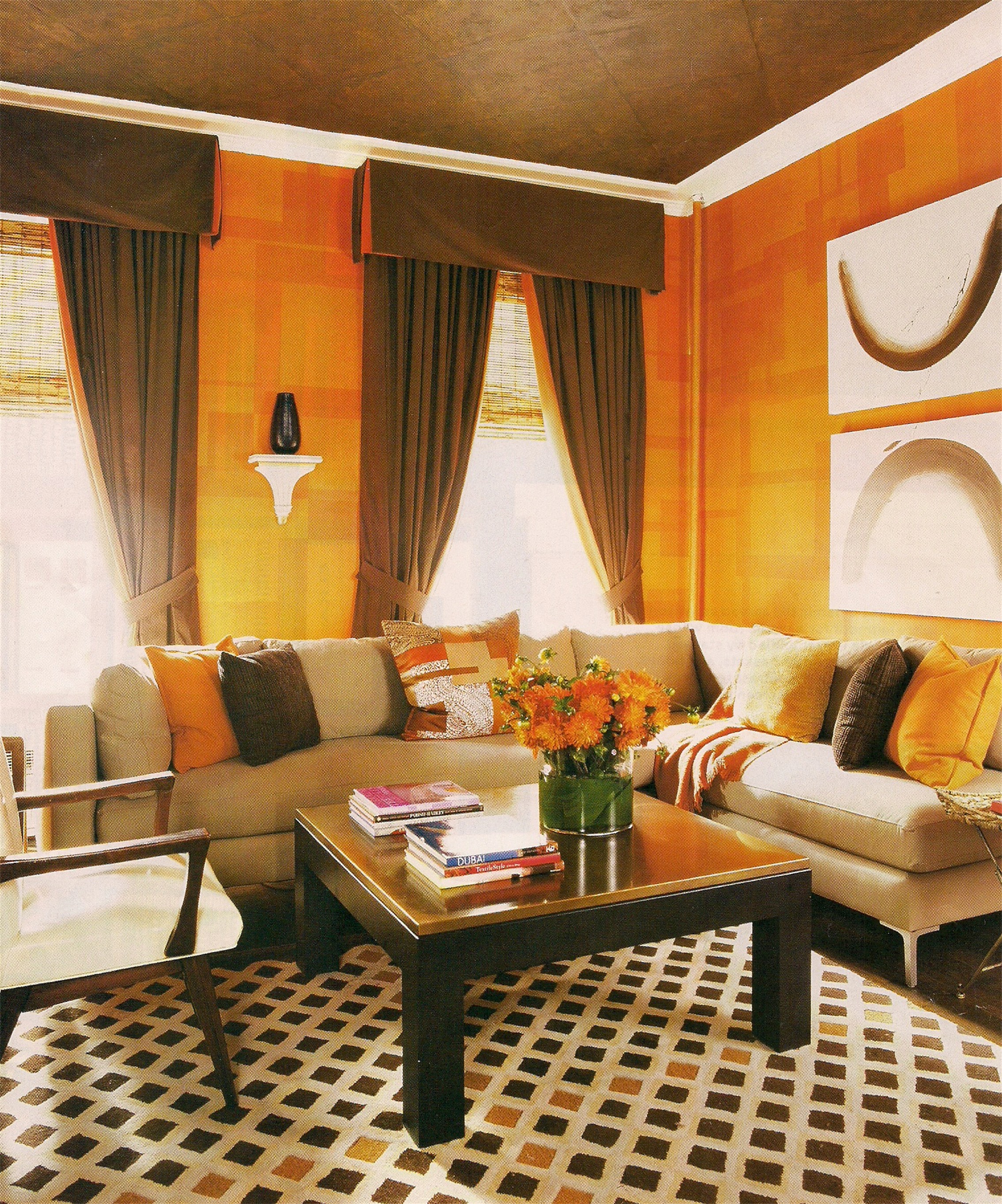 This room, by Trading Spaces designer Doug Wilson, features a painting he “swiftly executed” for the space. (To me, it’s a split ensō.) I also love the orange tissue paper-covered walls.